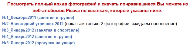 шаг 1. Заходите в раздел "Фотографии", внизу страницы расположен список ссылок на альбомы с фотографиями. Нажатием мышки выбираете альбом: